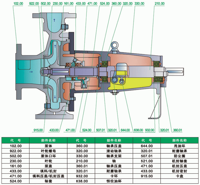 ZC型臥式化工流程泵結(jié)構(gòu)圖及零部件: