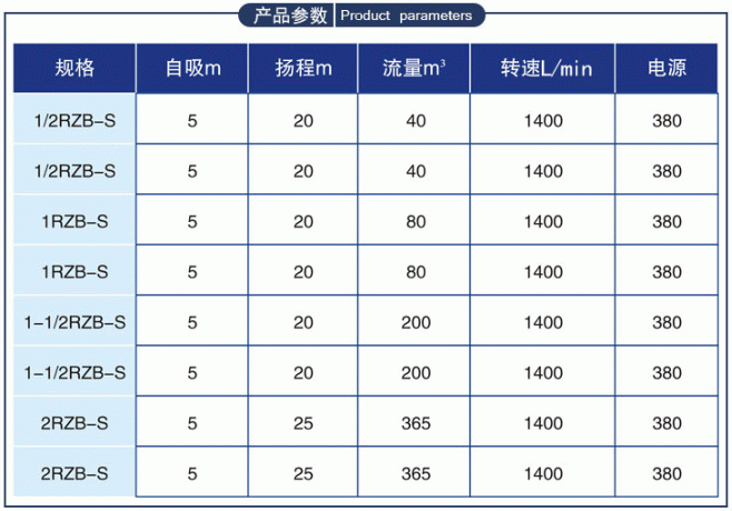 RZB柔性轉(zhuǎn)子泵性能參數(shù)表: